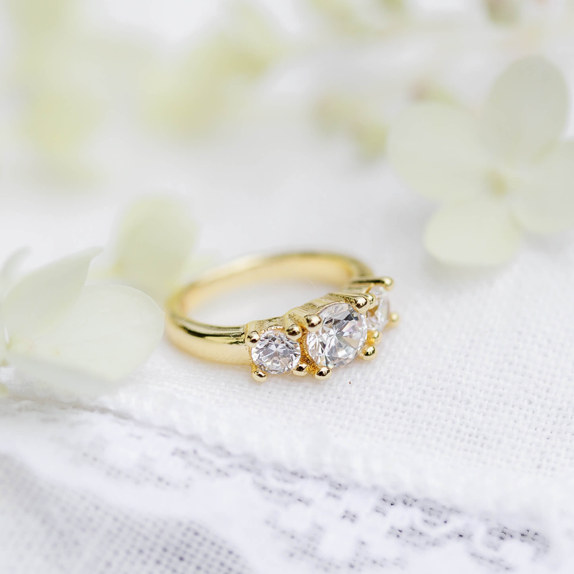 Ihana pienikokoinen kastesormus kirkkailla kivillä.
