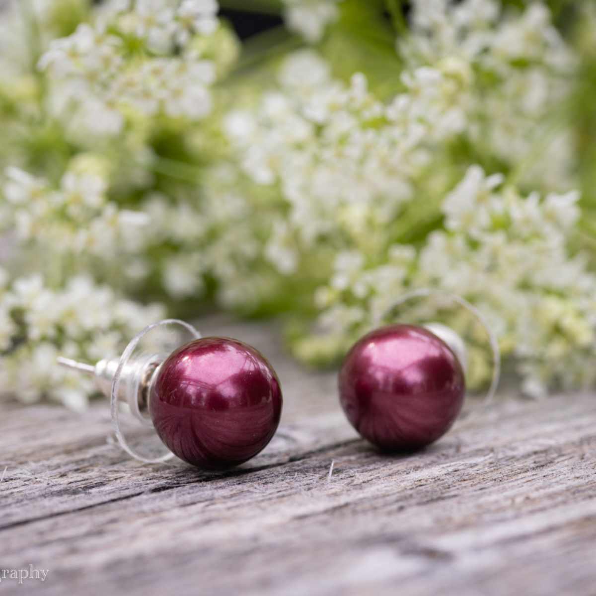 10 mm helmiäishelmeä olevat syvän tummanpunaiset korvakorut.